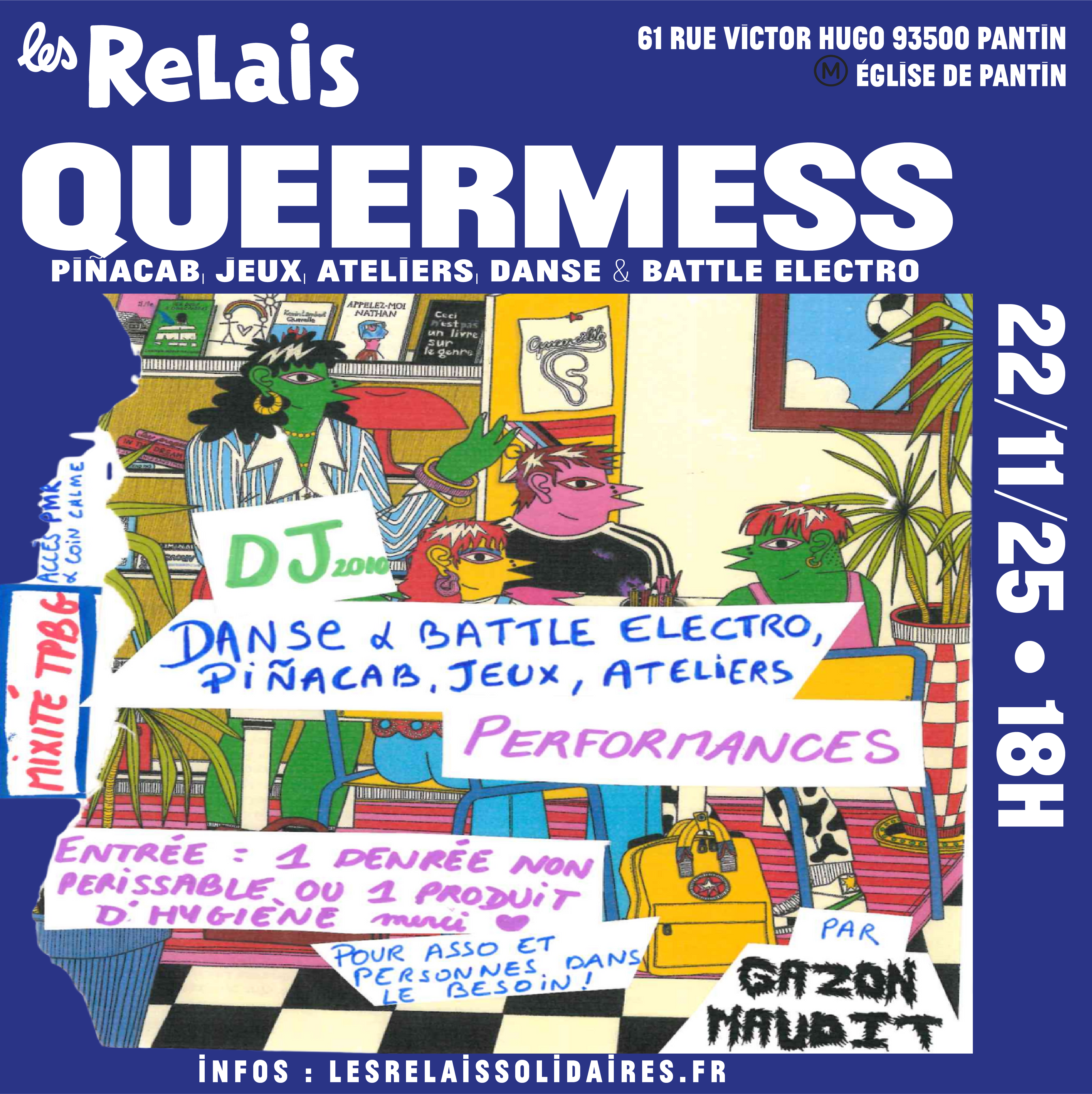 Le collectif de personnes gouines Gazon Maudit organise sa QUEERMESS, un espace de sociabilisation queer avec conférences, prises de paroles, jeux, stand-up et dj set ! Pour entrer, échangez une denrée non périssable au profit de l’association Autre monde;